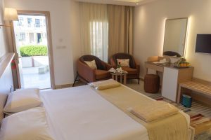 استمتع بالراحة والاسترخاء في غرفتنا القياسية بإطلالة جميلة على المسبح أو الممشى.